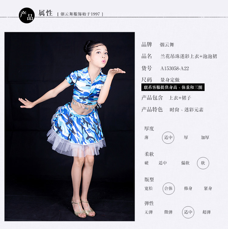 品名:兰花吊珠迷彩上衣+泡泡裙