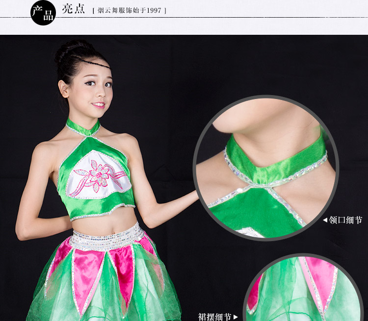 品名:13号房绿色纱玫红叶子裙