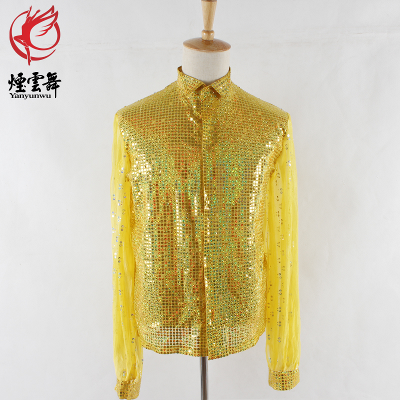 11号房男装黄亮片黄纱长袖衣A158658-D01