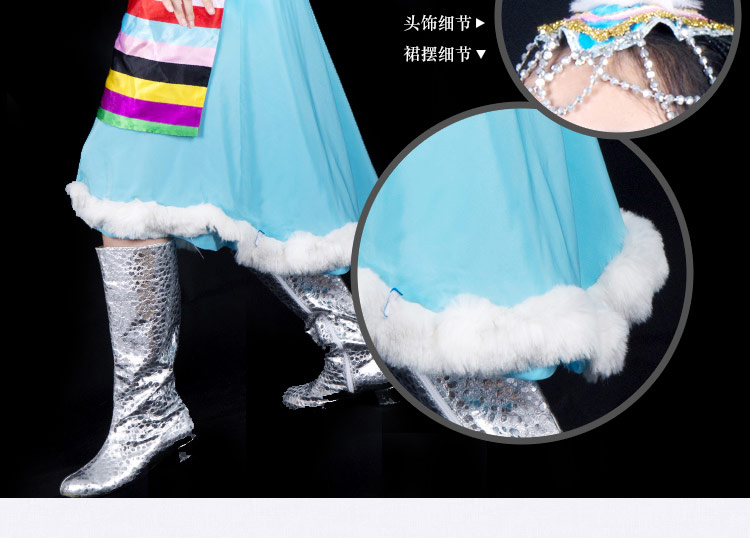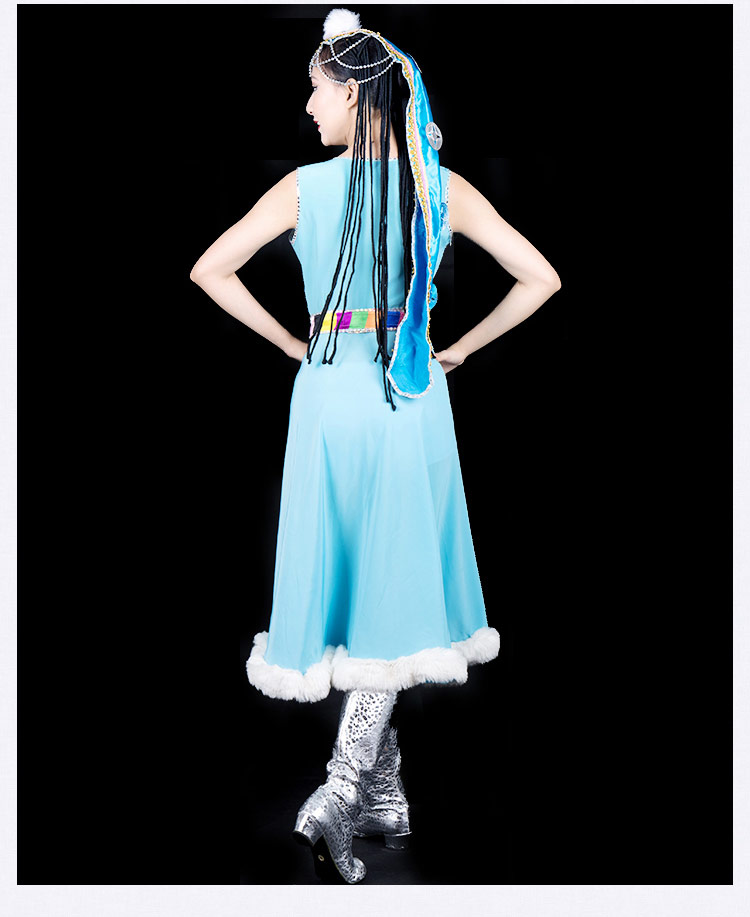 6号房蓝色无袖镶毛连体藏服A220758-L01